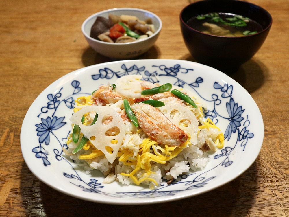 暮にいただいた毛ガニで、ちらし寿司にしました。