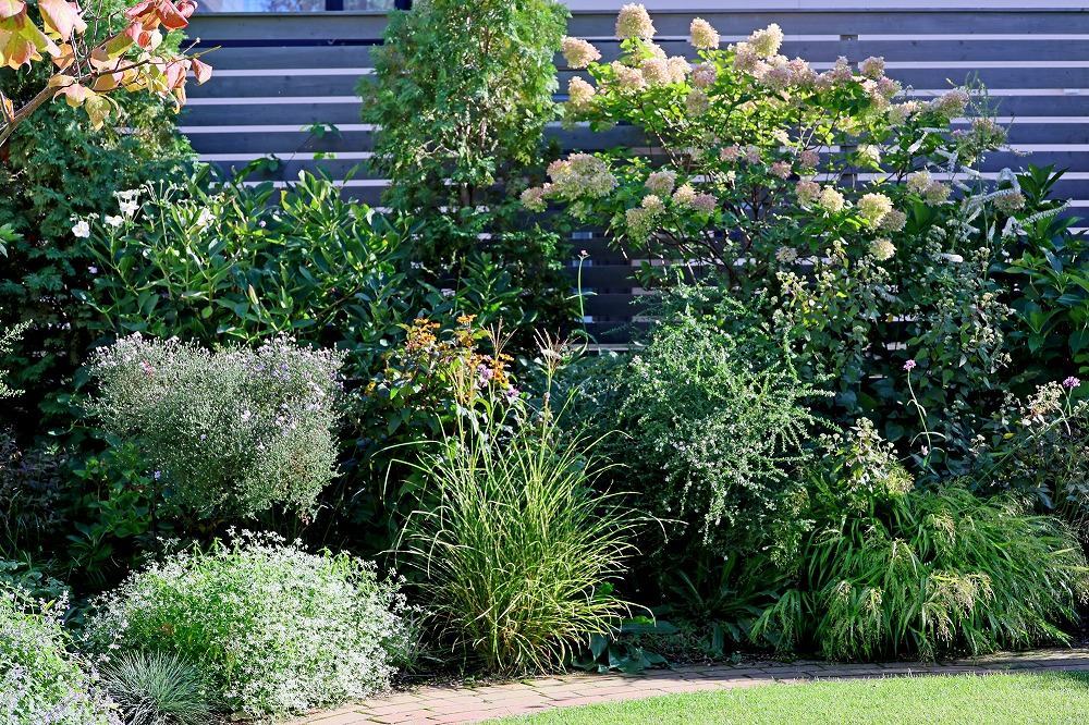 秋明菊、アスターやユーパトリウムが咲き始め、グラス類の穂が開いてきました。