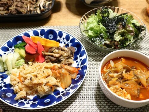 12/6-韓国風ご飯 ■炊き込みビビンバ■プルコギ(牛バラ・玉ねぎ・シメジ・かぼちゃ) ■辣白菜・たたききゅうり・赤かぶ甘酢■ユッケジャン風スープ ■チョレギサラダ(レタス・きゅうり・韓国海苔) 続きを読む →