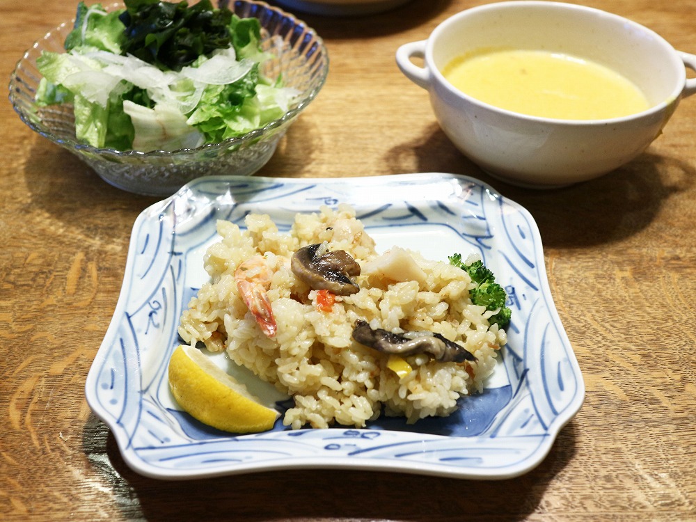 ■パエリア■タコのカルパッチョ■ナスのチーズ焼き■かぼちゃのポタージュ