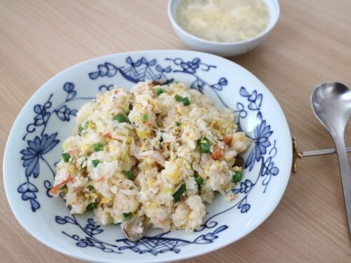 1/3-カニチャーハンまたまた新入りの器を使って 残っていたカニをチャーハンにしました。 ■カニチャーハン(カニ・卵・シメジ・筍・インゲン・葱・生姜) ■スープ(豆腐・卵・葱)■2026/01/03(土)曇-3.3 0.3