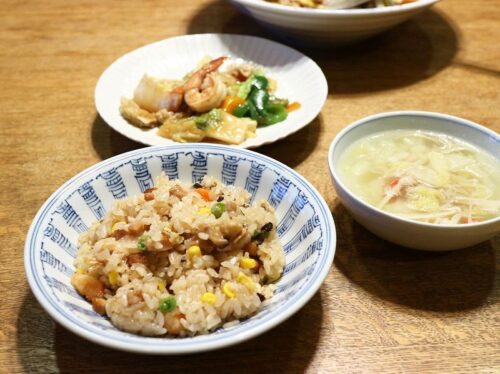 (焼豚ハム・葱・生姜・筍・干し椎茸・干しエビ・干し貝柱・mixベジタブル)