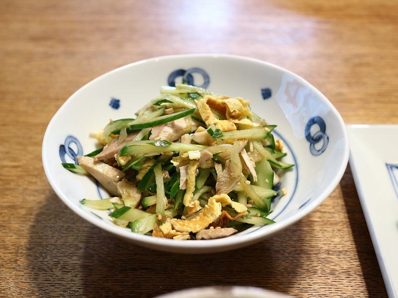 ■混ぜご飯■和え物(きゅうり・薄焼き卵・ロティサリーチキンの残り)