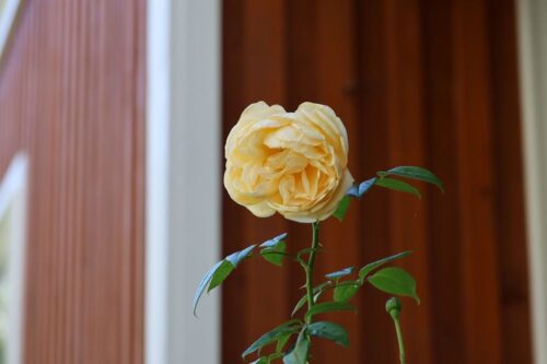 小屋の入り口に置いている鉢植えのティップントップ