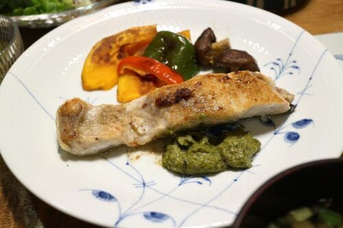 10/2-サーモンソテー 投稿日時: 2025-10-02 投稿者: はるみん生の鮭が出ていたので、オリーブオイルで焼いてバジルソースで ■鮭のソテー■サラダ■ナスの炒め煮■オクラおかか■味噌汁(インスタント) 付け合せは、昨日の残りのグリル野菜 サラダ(レタス・赤玉ねぎ・わかめ・ミニトマト) ナスの炒め煮 ■2025/10/02(木)+13.8→+24.4