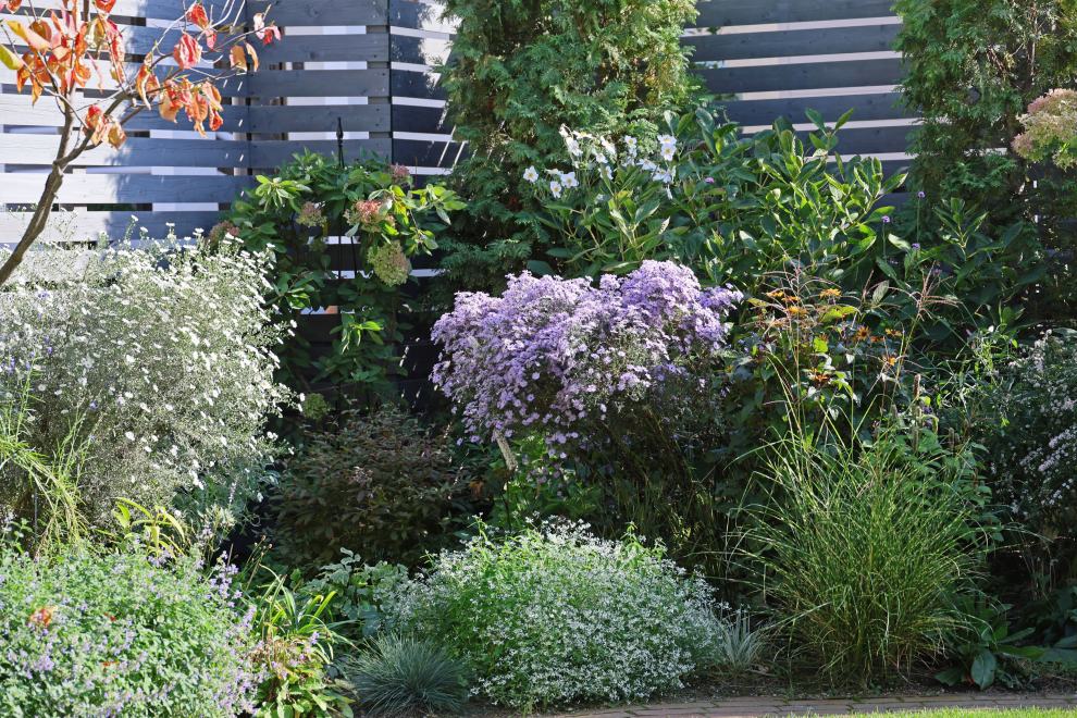 10/4の庭 投稿日時: 2025-10-04 投稿者: はるみん14時撮影 ラベンダー色のは、アスター・リトルカーロウ、後ろの白い花は秋明菊 左手前の白花はクジャクアスター ■2025/10/04(土)晴れ+14.7→+24.7