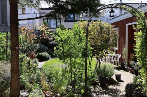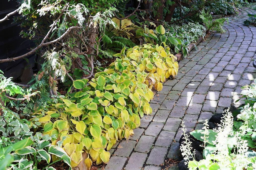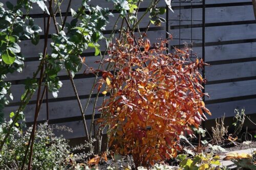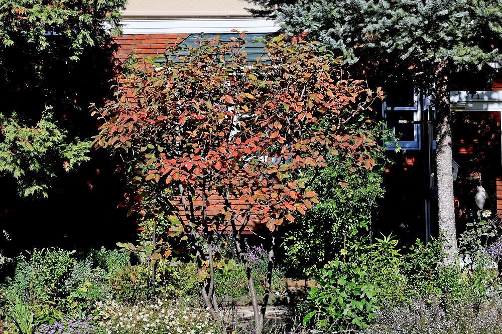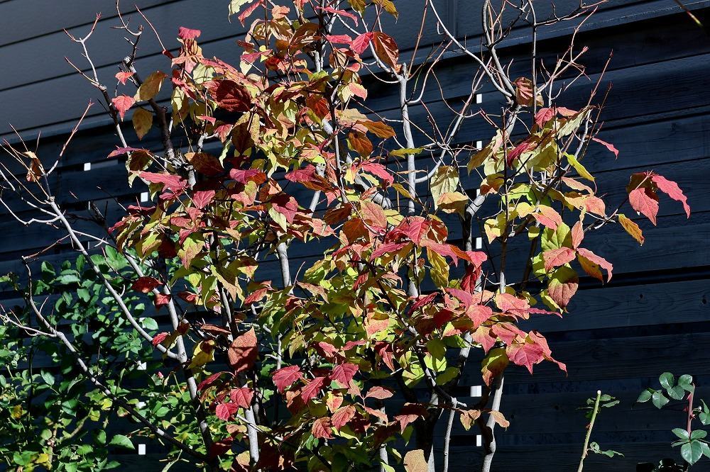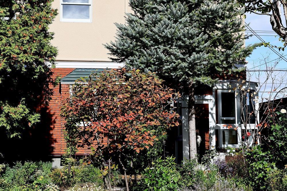 以前は表の庭の芝生の中央に植えていて、居間や台所から見える我が家一の紅葉スポットでしたが、今は東北の角に移動したので、家の中からはユーティリティの窓からしか見えなくなりました。