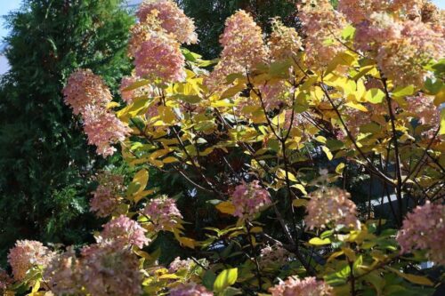 枯れ色のノリウツギの花、太陽が当たるときれいです。