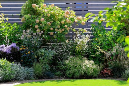 フジバカマの跡に、斑入りアジサイを移植。姫ノリウツギも前に出しました