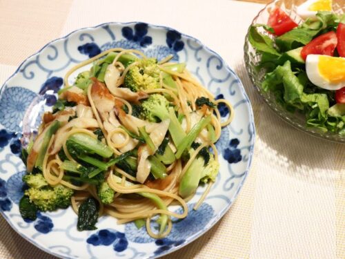 キャベツを切らしていたので、代わりに小松菜で、それだけじゃあんまりかなとブロッコリと椎茸も足しました。