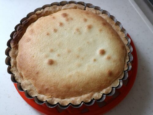 表面に、残した卵白少々と牛乳を混ぜたものを刷毛で塗って、180℃のオーブンで20分焼いて出来上がり。