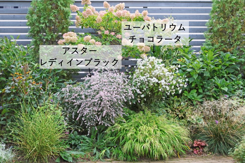 秋になるとボリュウムいっぱいのユーパトリウムとアスター