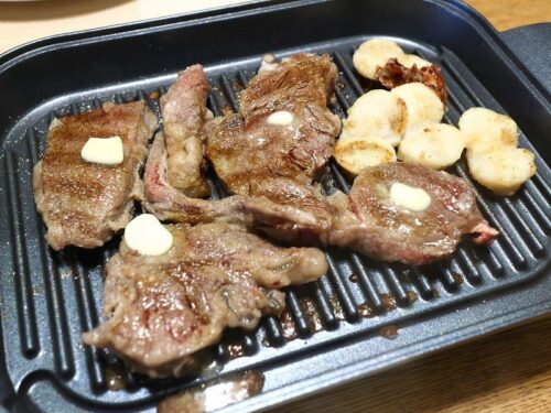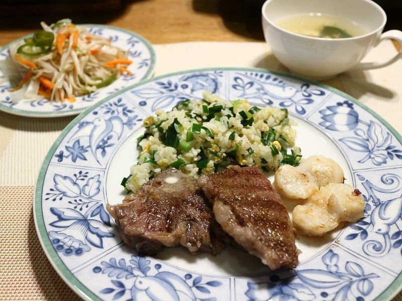 10/17-ステーキと蒸し野菜 投稿日時: 2025-10-17 投稿者: はるみん ■ビーフステーキ・ホタテのバター焼き■ニラピラフ(卵・エリンギ) ■蒸し野菜(もやし・玉ねぎ・人参・ピーマン・エノキ) どっちもビタクラフトのグリルパンで作ってそのまま食卓へ。 蓋をして10分くらい。エノキを加えて更に5分くらい 野菜の水分だけでしんなり。 ■2025/10/17(金)晴→曇+11.7→+17.1