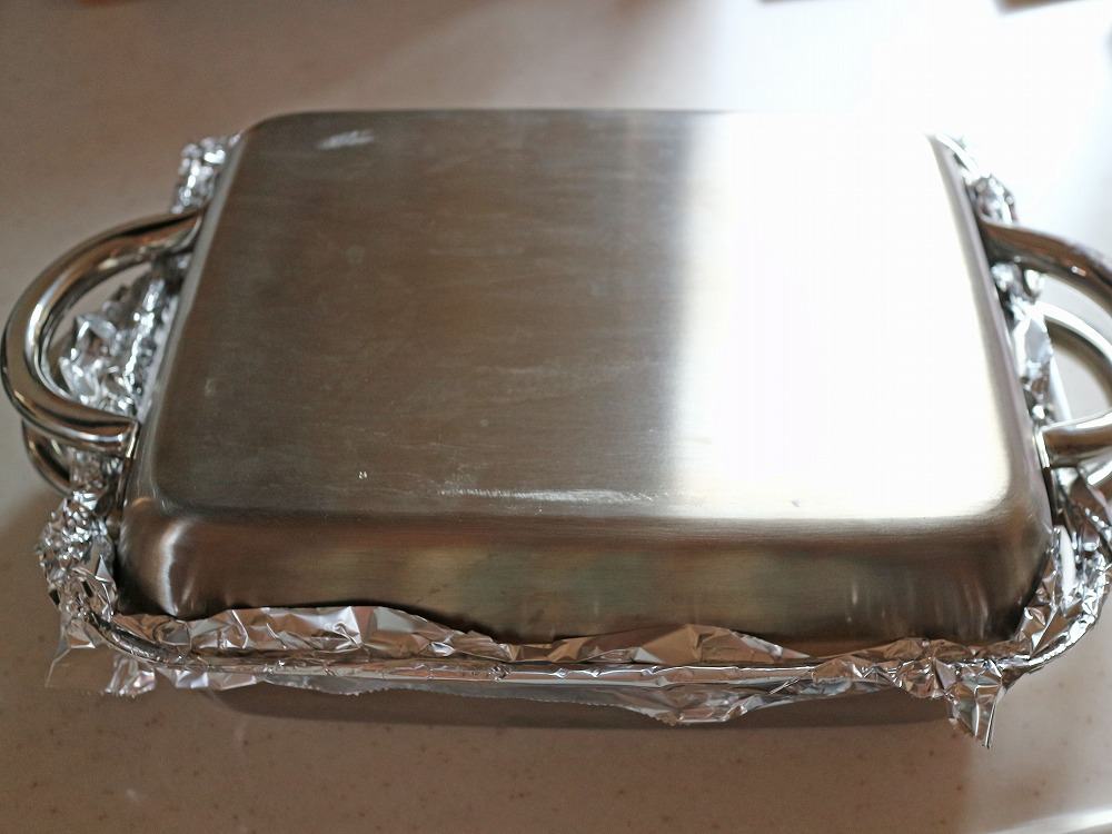 蓋の内側にも煙汚れ防止のアルミフォイルを巻いたので、密封性が増して一石二鳥