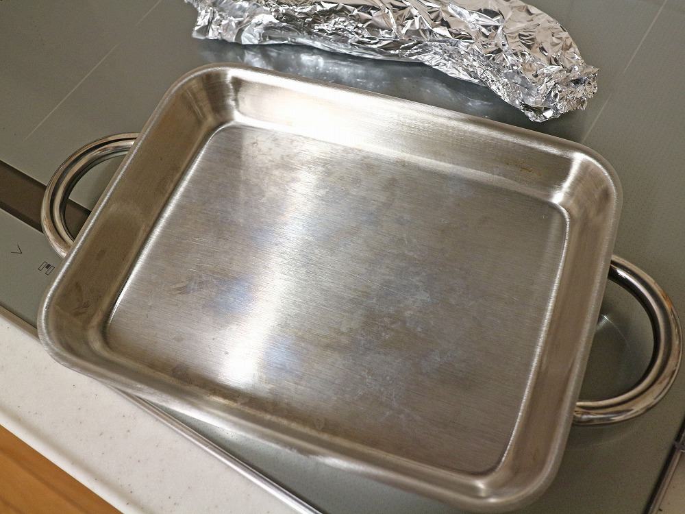 チーズは溶けるかもなので、くっつかないアルミフォイルを受け皿に
