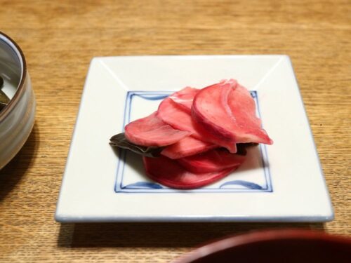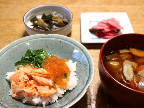 ■鮭の親子丼■赤カブの甘酢漬け■ナスと昆布の田舎煮