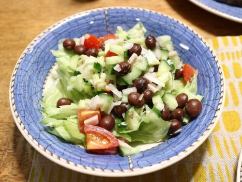 ■豆サラダ(さくら豆・玉ねぎ・セロリ・きゅうり・ハム・ミニトマト・レタス)
