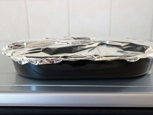 ホイルを縁に巻き込んで蓋をして(茹で卵が縁より少し飛び出すので、上はややふんわり)