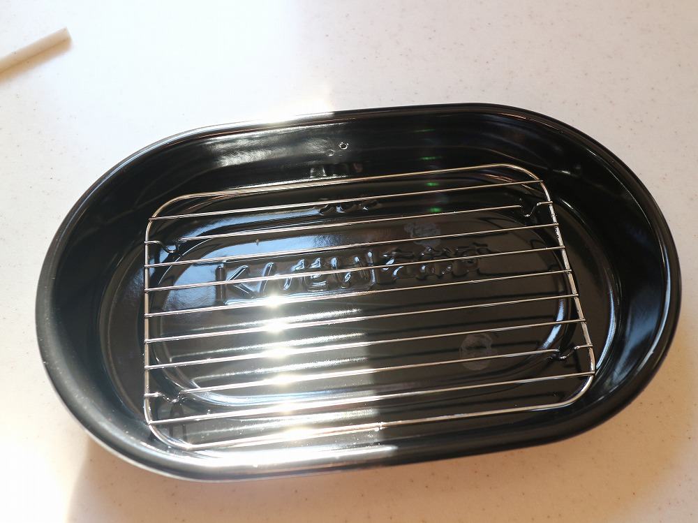 というわけで、IHのグリルやオーブンで使えるサイズの、燻製道具はないかしらと探していて、現行のパナのフイッシュロースター「けむらん亭」についてる燻製容器を発見。