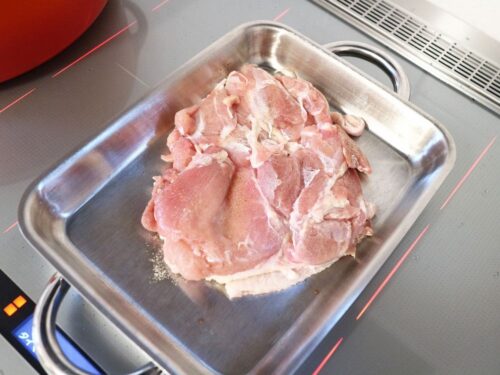 鶏肉を入れようと思ったけれど、焼いたのを足したほうがいいかなと、パリパリチキンに