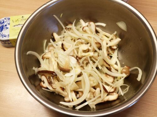 具材は、玉ねぎ半個、しめじ、エリンギ、椎茸、