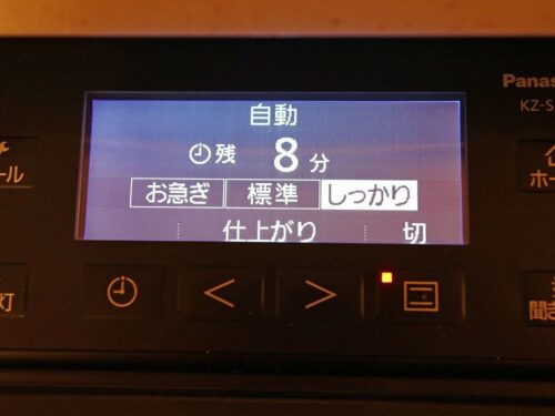 IHのグリルは、自動調理の「ピザ」→「しっかり」を選ぶと、8分でになりました。