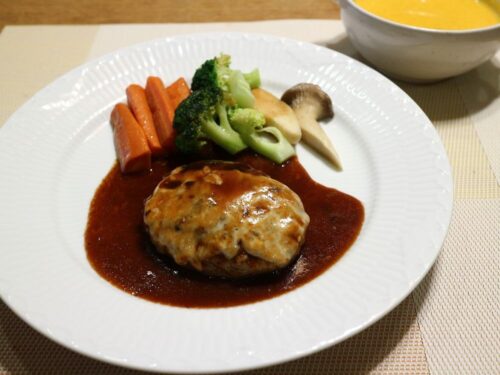 12/7-ハンバーグ 投稿日時: 2025-12-07 投稿者: はるみん ■ハンバーグ(チーズ・デミソース)人参・ブロッコリ・エリンギ ■かぼちゃのポタージュ(豆乳) 昨日の残りの3点セット ■2025/12/07(日)晴/雨+1.8→+9.3