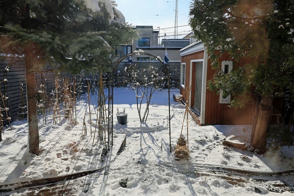 12/9の庭 投稿日時: 2025-12-09 投稿者: はるみんさらっと降りましたが、お日様キラキラ、きれいです。 窓ガラス越し撮影(10:30) 家の中から見ていると暖かそうですが、今日は日中もマイナス気温。 このところプラス気温が続いていたこともあって、外に出ると気温以上に寒く感じました。 久しぶりのお天気で、カーテン越しの木漏れ日がうれしい。 ■2025/12/09(火)-2.2→-0.2