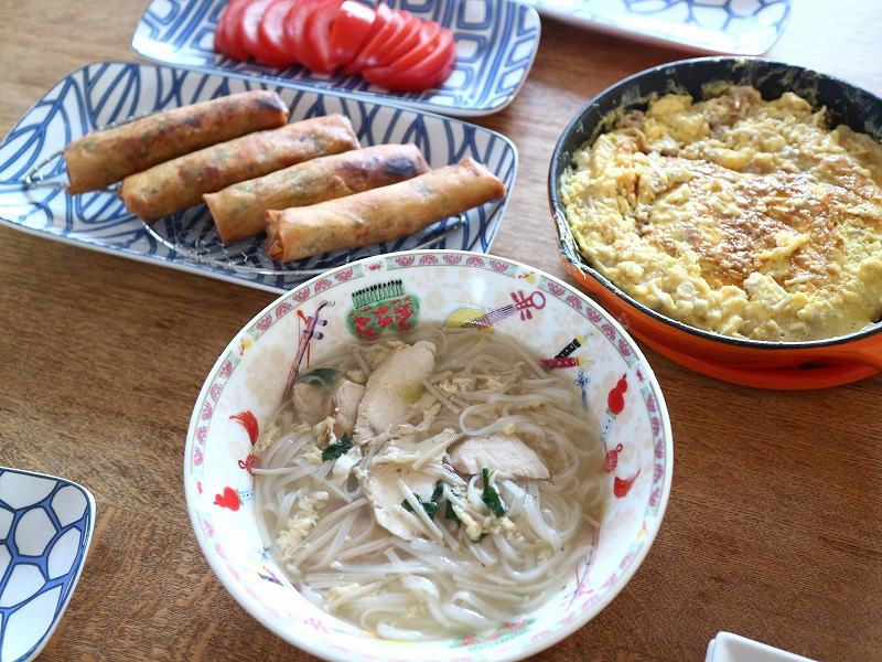 4/11-エスニック風 投稿日時: 2025-04-11 投稿者: はるみん ■ベトナム風卵焼き■フォー(茹で鶏・もやし・ニラ・卵)■春巻き(先日の残りを冷凍)■トマト 中身はエノキと豚ひき肉 ソースは、ナンプラーにスイートチリ 卵焼きは、この本を参考に作りました 料理写真ではこんな感じ ■2025/04/11(金)曇/晴+6.8→+17.4