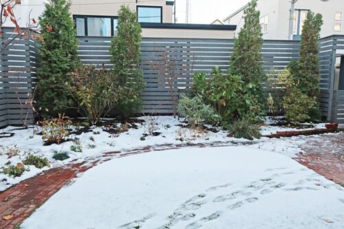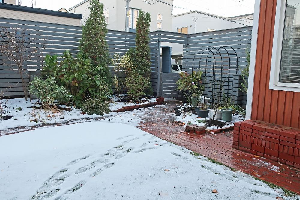 昨日降った雪がうっすら残ってますが、カッパ着て日向でチマチマやってると背中がポカポカ