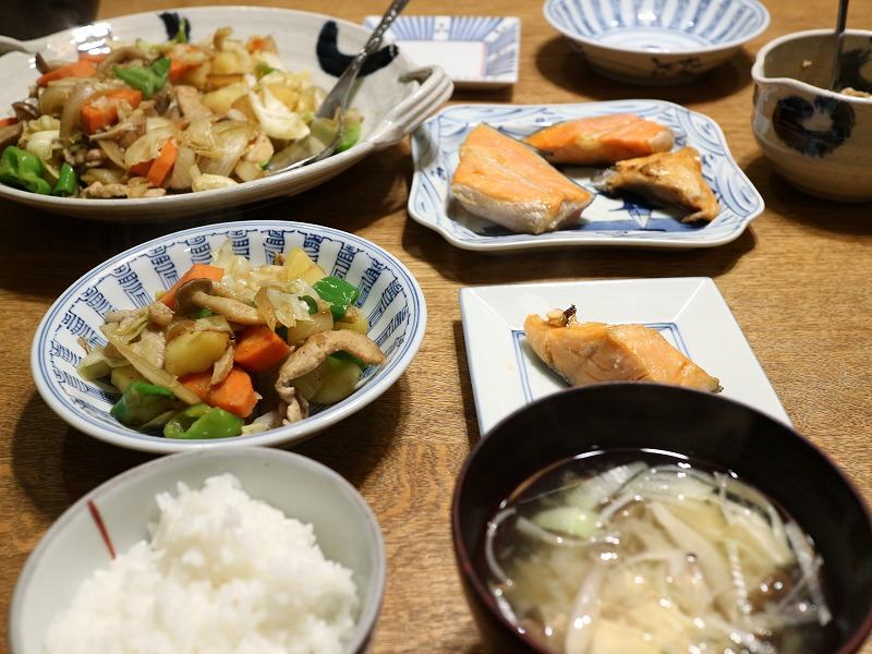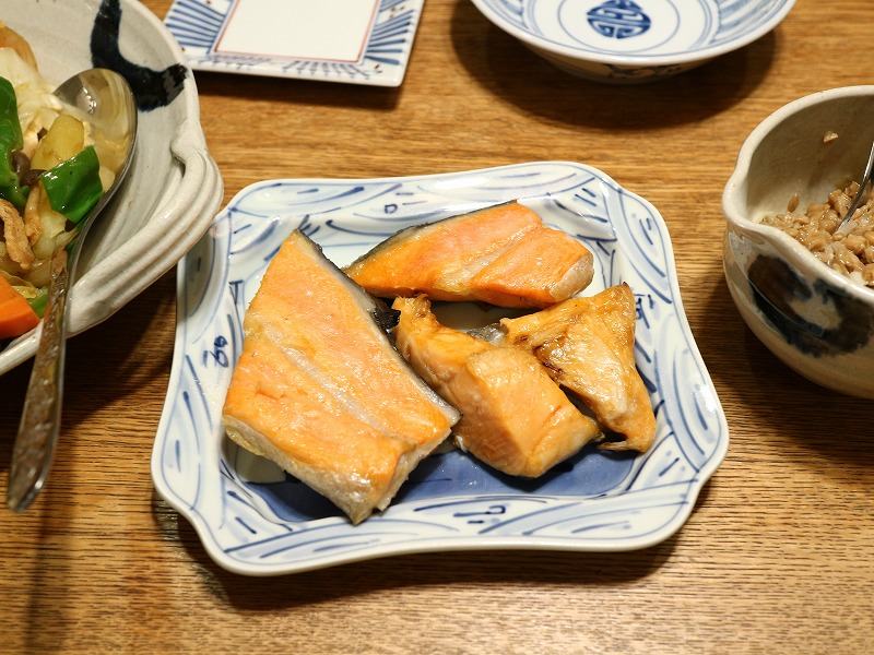 11/13-ご飯が進むくん 投稿日時: 2025-11-13 投稿者: はるみん ■野菜炒め■銀鮭切り落とし■納豆■味噌汁(豆腐・葱) ■野菜炒め(豚肉・キャベツ・じゃがいも・人参・シメジ・ピーマン・玉ねぎ) デパートWEBにこの時期出る銀鮭の切り落とし。 尻尾部分が多いので脂も塩加減もちょうど。 冷凍庫のあると何かと助かるので、今年も買いました。 冷凍庫ストックしてる納豆も食べましょ ■2025/11/13(木)曇/晴+2.9→+13.9