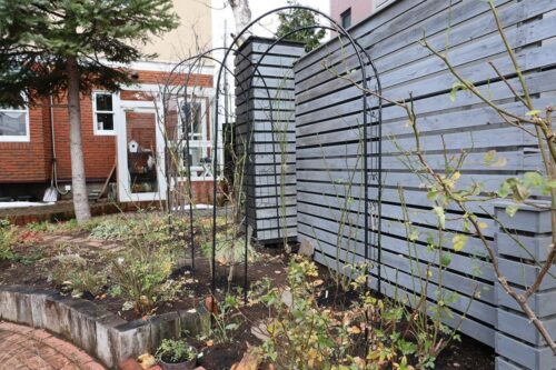 ここの金属アーチも位置直し。向こうのにはマダムPオジェを誘引