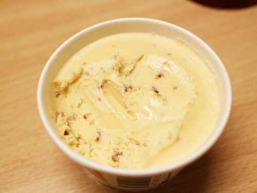 デザートは、季節限定のハーゲンダッツの3種が2個ずつ入った「世界のデザート セレクション」の中の「クリームブリュレ」