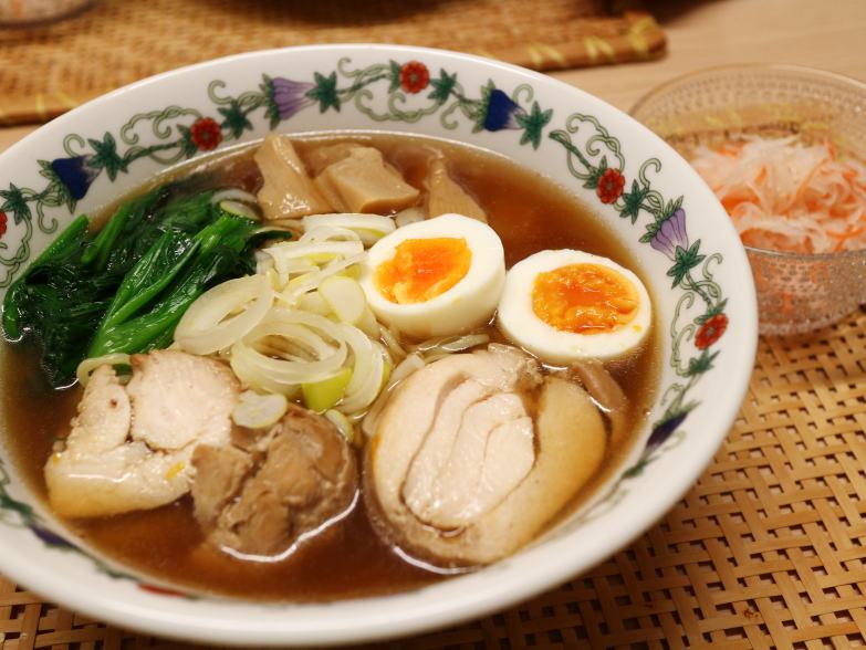 ■鶏チャーシュー・シナチク・ほうれん草・ゆで卵・葱 ■大根と人参のなます