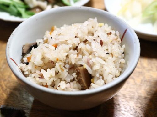 ■炊き込みご飯(黒豆・ホタテ・椎茸・ごぼう・人参)