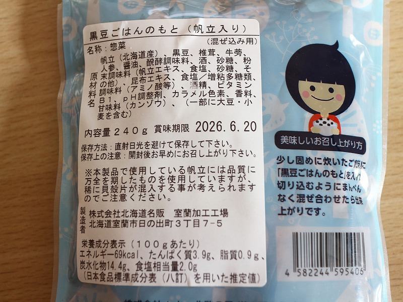 炊き込みご飯に使ったのはこれ。当別の道の駅でしか扱っていないとか。