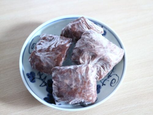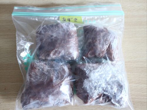半分は、お砂糖加えて煮たものをぜんざい1人前くらいずつ小分けして冷凍。