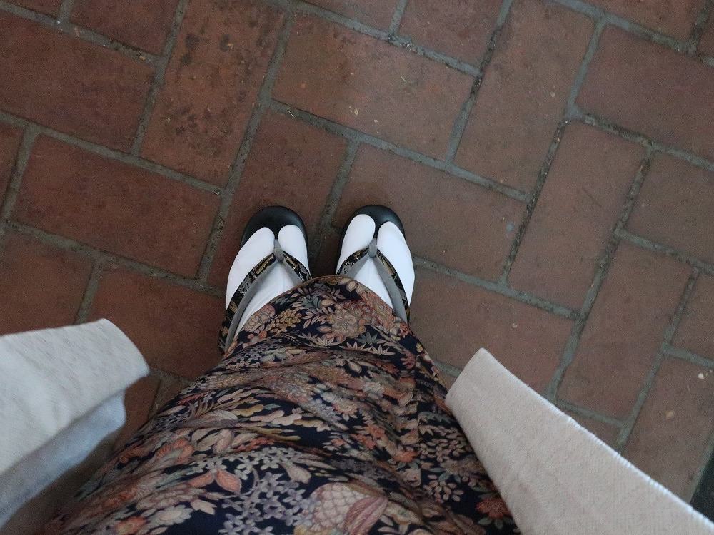 車庫までは雪がないし、車でドアツードアなので、つま皮なしの夏草履にしました。