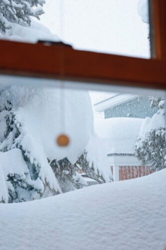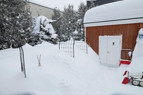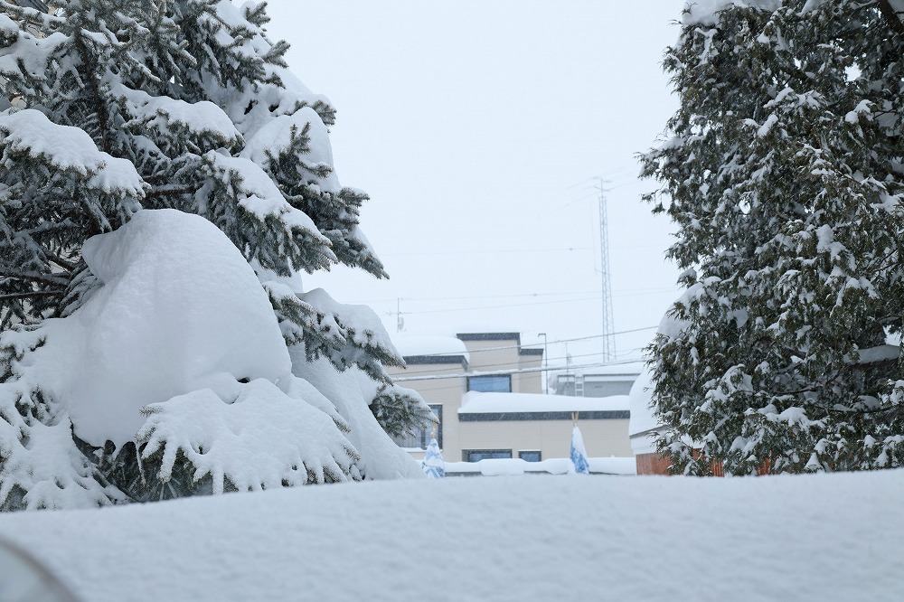 庭も自然降雪+跳ね上げた雪で2mくらい積もってます(12:14)