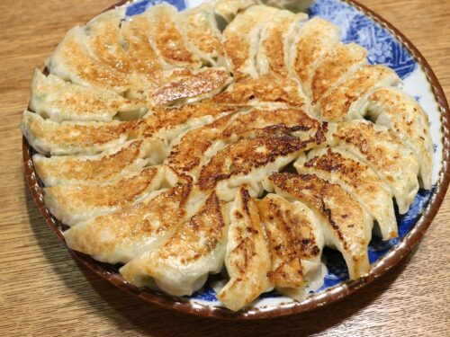 12/30-餃子 投稿日時: 2025-12-30 投稿者: はるみん ■餃子(豚肉・白菜・ニラ・葱・生姜)■鶏モモの竜田揚げ(レタス・パプリカ) ■スープ(豆腐・卵・葱)■赤カブの甘酢漬け おせち作りの合間に餃子。 種だけ作って包むのは上手なおとさんにお任せ。 豚ひき肉づくりと白菜刻み、生姜と葱刻みはフードプロセッサーで。 鉄のフライパンで焼いたのできれいな焼き上がり。 もう一品は鶏モモのザンギ(竜田揚げ) ■2025/12/30(火)曇/雨+0.1→+3.3