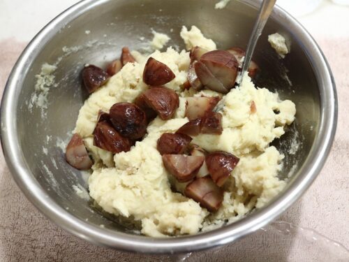 渋皮煮のラム酒漬けをカットして混ぜ込み。これ思いつきで作ったけどおいしい!