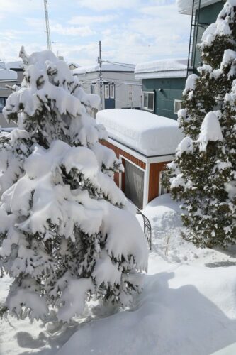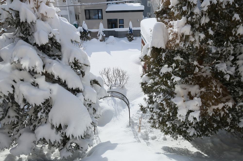 自然降雪部分は積雪1mくらいかな。ジューンベリーの木が半分くらい埋まってます。