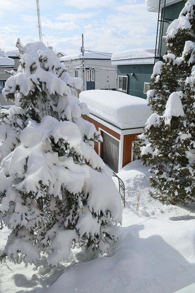 新雪なら1m以上積もっても大丈夫な構造ですが、このあと暖気が来て、溶けて締まった状態でまた今回のような大雪が来ると、重さが倍増してあぶないのです。