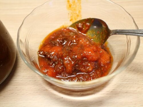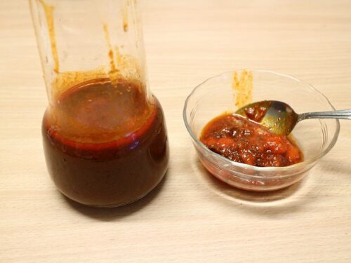 けっこうな量のラードと辛そうな調味料が残りました。