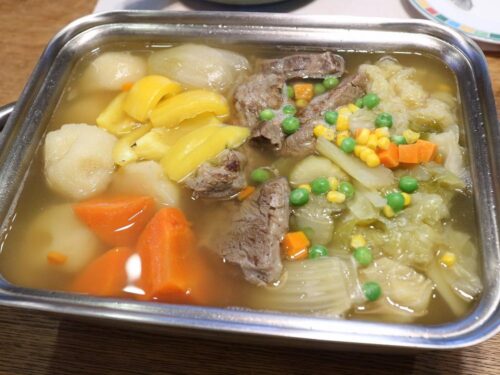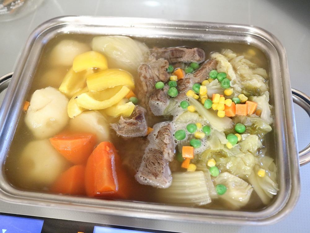 残ったスープに野菜を入れて沸騰15分させてから、鍋帽子で2時間半