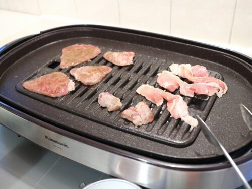 2/14-焼き肉 投稿日時: 2026-02-14 投稿者: はるみん ■牛肉・鶏肉■ナムル(ほうれん草・大根・人参)■キムチ いつものコンロ前お二人様限定焼き肉 上は換気扇、下は穴開きホットプレート、油煙も飛ばず安心です。 炭火じゃないのが残念ですが、ちょっと良いお肉でも家で食べたら安上がり。 横のテレビ見ながらゆっくり食べられて最高 ■2026/02/14(土)曇り→晴れ-4.3→+3.8