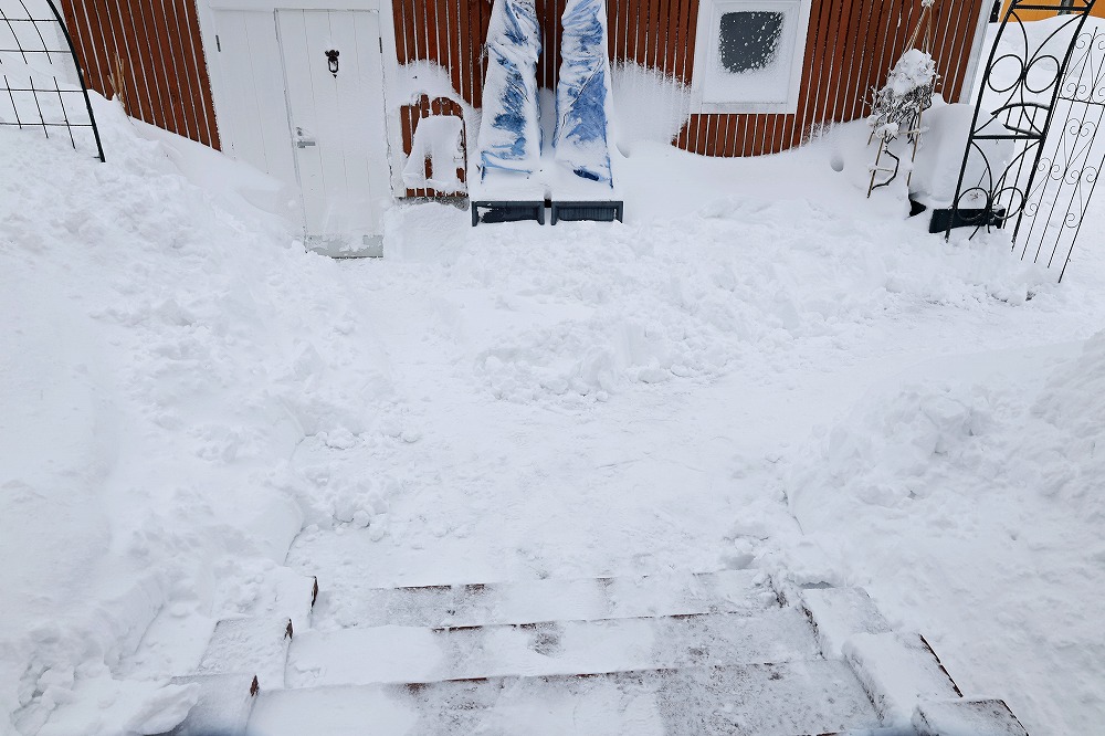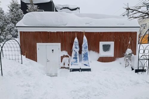 車庫のシャッターの前にも50センチくらいの雪山ができていたそう。