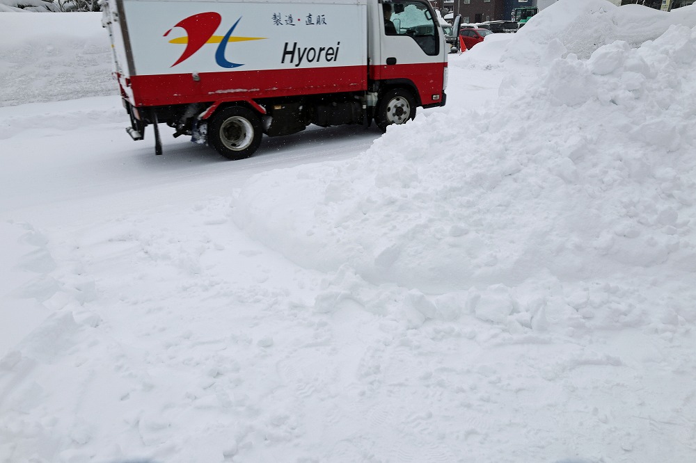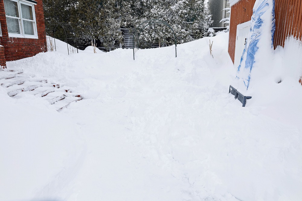 除雪機はシャッター側から出すので、まずはそこを人力で除雪で大変だったと思われ。