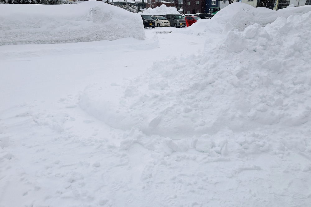 ここに積んでおけば、週に一度排雪業者が来て持っていってくれます(有料の個人契約)