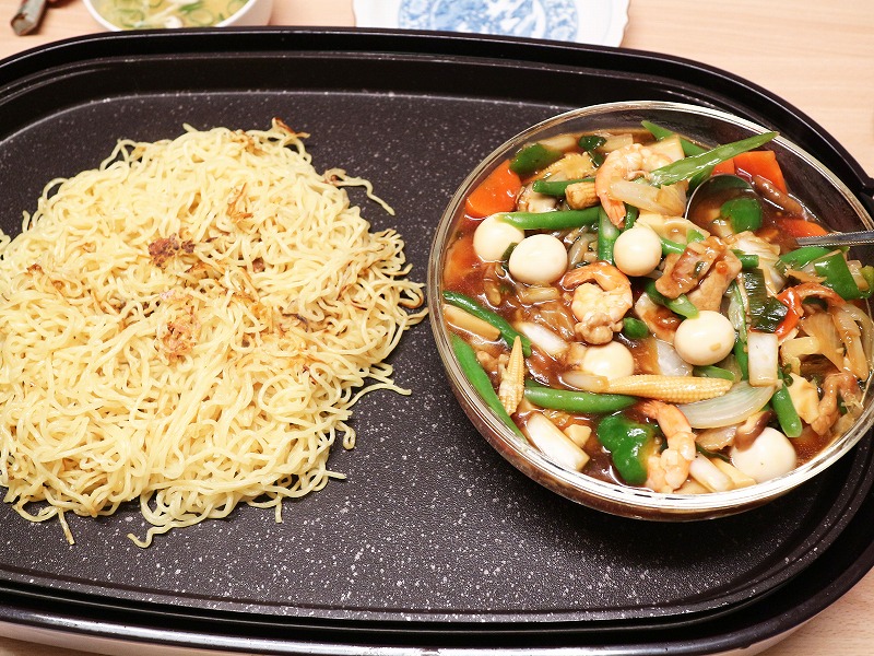 熱々を食べたく、「ホットプレートで温めながら」をやってみました。